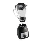 Las cuchillas de acero inoxidable trabajan con un diseño de acople metálico para una mayor durabilidad y estabilidad durante el uso. El cuerpo es de plástico negro, cómodo al tacto, y su base ofrece agarre firme para evitar desplazamientos al batir. Además, la jarra se lava con facilidad, gracias a su composición y formas simples.