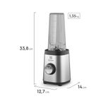 Con un peso de 1,35 kg, su diseño compacto facilita el transporte para preparar bebidas en casa, en la oficina o durante el entrenamiento. Su vaso de 0,6 L y las dos botellas para llevar permiten preparar y compartir bebidas sin cambiar de recipientes, manteniendo la frescura en cada momento. Además, la seguridad de las piezas facilita ensamblaje y limpieza.