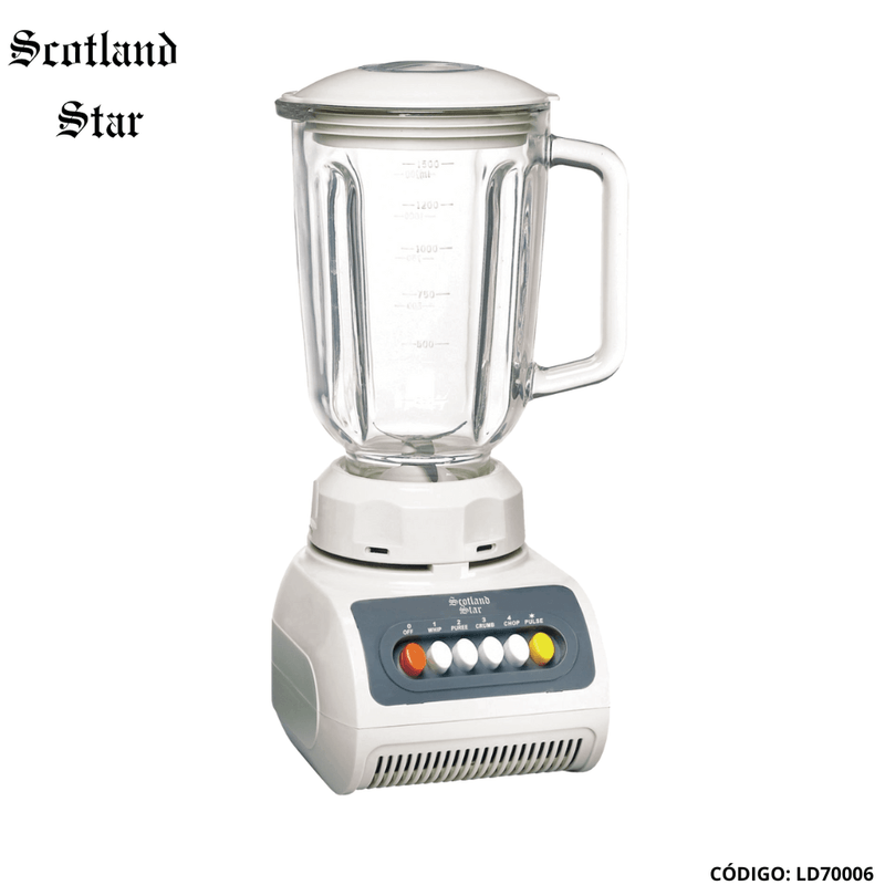 La licuadora Scotland Star SS-LC76 es una aliada para la cocina cotidiana. Con vaso de 1.5 litros en vidrio, permite preparar porciones para la familia sin interrupciones.