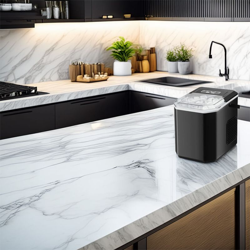 Los cubitos de hielo no se pegan y pueden mantener la forma durante mucho tiempo. El panel de control es muy fácil de operar Limpieza automática 20 kgs de hielo en 24 horas. Compresor R600a de alta eficiencia. Controla el tamaño de los cubos de hielo de acuerdo a la temperatura del ambiente. (S/L) Capacidad del depósito de agua: 1.3L Panel de control LED digital para todos los controles de fabricación de hielo. Incluye pala de hielo y cesta. 110V/60HzFABRICA de HIELOS 20KG DE HIELO/DIA NGO. INSTALACIÓN CON COSTO: +593 98 075 4770