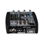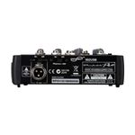 Las salidas dobles de 1/4" y la salida de auriculares de 1/4" permiten monitorizar y conectar a sistemas compactos o monitores de escenario. Las entradas incluyen 1 XLR y 5 salidas de 1/4" para líneas, lo que facilita integrar micrófonos y fuentes diversas. Todo se maneja en un equipo de tamaño mini sin sacrificar la capacidad de gestión de mezcla.