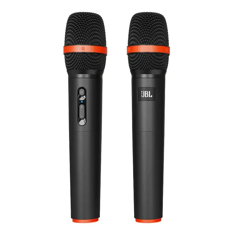 Este set incluye dos micrófonos de mano inalámbricos con un receptor que se conecta mediante Jack de 6.3mm. Están diseñados para ofrecer una voz clara, sin retrasos y con un patrón cardioide que reduce el ruido de fondo, ideales para karaoke o presentaciones.