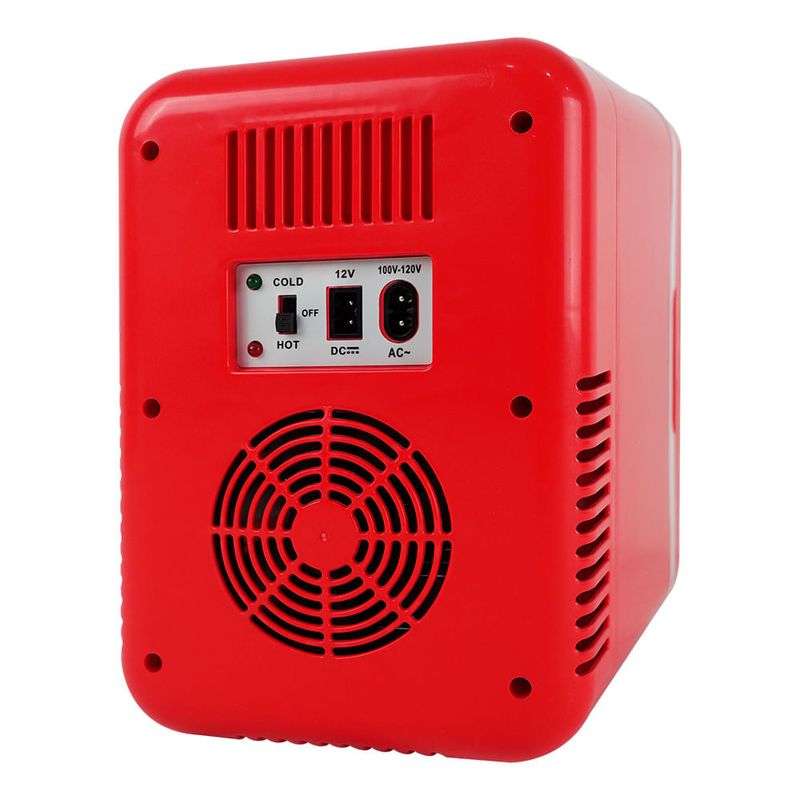 El sistema de refrigeración semiconductora permite enfriar aproximadamente 22°C por debajo de la temperatura ambiente y, cuando se necesita, activar la calefacción en un rango de 55 a 65°C. Es compatible con voltajes DC12V y AC220V, cubriendo uso en coche y en red doméstica. El conjunto incluye una parrilla de plástico y un adaptador de 12V para coche; peso neto de 1,8 kg; cable de alimentación de 1,8 m; dimensiones 32 cm de largo, 23,5 cm de ancho y 29,5 cm de profundidad; color rojo; garantía de 12 meses; material ABS de calidad alimentaria.
