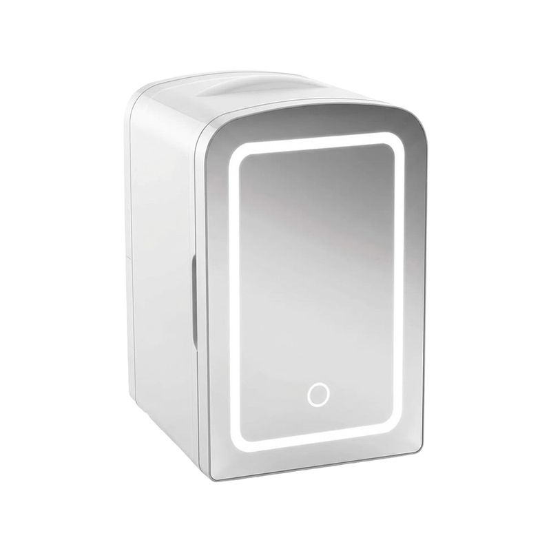 Mini minibar Chefman Rj484Mlwhite-Dsmx P8786, con capacidad de 4 litros y acabado blanco, se presenta como una solución compacta para mantener productos de belleza frescos y a mano.