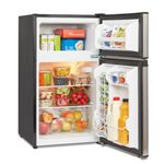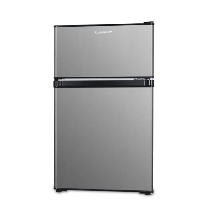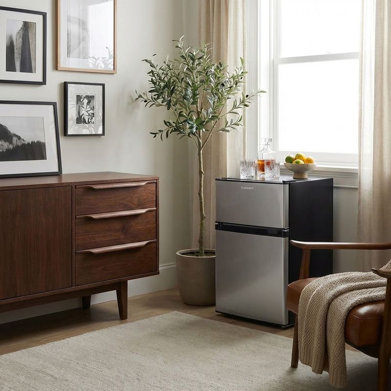 Este minibar Cuisinart CCF-31 de 88 litros llega en acabado plateado para encajar en cualquier estilo. Sus dimensiones de 85,1 cm de alto, 51,6 cm de ancho y 50,5 cm de profundidad permiten colocarlo en cocinas, despachos o salas de descanso. Ofrece organización inteligente con estantes extraíbles y un soporte para latas en la puerta, un compartimento para perecederos y un congelador separado; las puertas reversibles facilitan adaptar la apertura al espacio disponible.