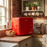 Este minibar de 48 litros ofrece un perfil compacto y práctico para espacios reducidos, sin sacrificar capacidad. El termostato ajustable facilita hallar la temperatura ideal para bebidas y snacks, mientras la carcasa de diseño grande y redondeado estilo R40 aporta presencia en cualquier habitación. La bisagra lateral de acero inoxidable con cierre automático añade seguridad y comodidad de uso en el día a día. Un estante de vidrio mantiene ordenadas las bebidas, evitando que se deslicen y se mezclen. Entre sus ventajas destaca el enfoque en ahorro de energía, una cualidad útil para entornos donde se busca eficiencia y menor consumo. La configuración permite almacenar botellas de 2 litros gracias a un compartimiento enfriador separado, lo que facilita la organización y el acceso rápido. El color Rojo aporta un toque distintivo, ideal para salas de descanso o zonas de recepción donde el estilo importa tanto como la funcionalidad. La garantía de 12 meses añade tranquilidad respecto a la inversión realizada. En resumen, este minibar Midea combina capacidad, rendimiento y diseño pensado para uso diario: mantiene bebidas a temperatura adecuada, ofrece almacenamiento específico para botellas grandes y se integra con facilidad en diferentes espacios, desde hoteles boutique hasta oficinas pequeñas.