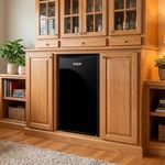 El sistema Frost garantiza una refrigeración constante, y el panel de control manual ofrece respuestas inmediatas al ajuste de temperatura. La iluminación interior y la puerta de vidrio con efecto espejo combinan practicidad y estilo, convirtiéndolo en un complemento apto para cocinas pequeñas, dormitorios, despachos o zonas de descanso.
