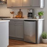 Su línea sobria y el color plateado permiten integrarlo en dormitorio, despacho o habitación de hotel sin llamar la atención. La distribución interna facilita la organización, con estantes que separan bebidas de aperitivos y permiten un acceso rápido. Aunque compacto, este minibar está preparado para un uso diario, manteniendo los productos a la temperatura adecuada sin complicaciones. Su diseño compacto favorece la movilidad en espacios reducidos.