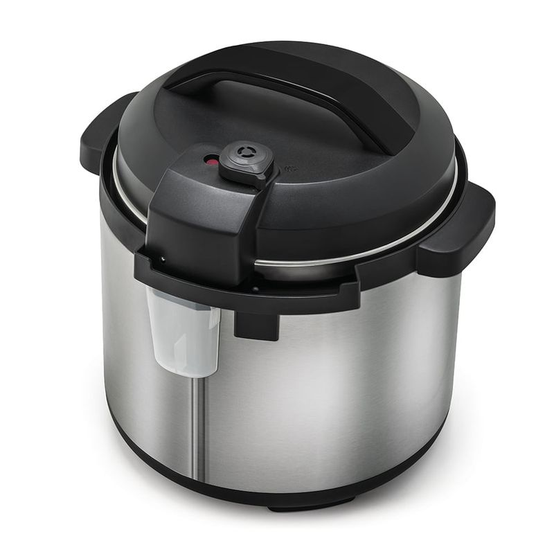 Olla a presión con gran capacidad de 6 litros. Puedes programar la cocción desde 2 a 24 horas. Traba automática de la tapa, bloqueo mecánico, control de presión, dispositivo de alivio de presión; así como otros dispositivos que garantizan un uso seguro durante la preparación de tus recetas.