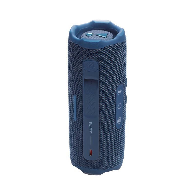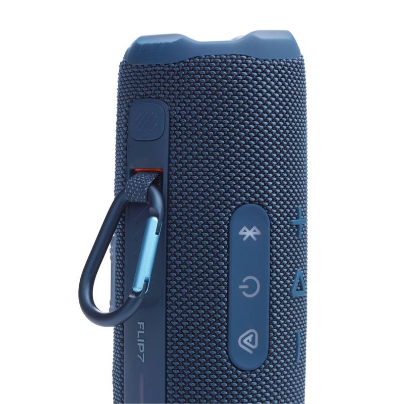 El Parlante JBL PB-Flip7 se distingue por su diseño rugged que resiste agua y polvo gracias a la clasificación IP68, ideal para aventuras al aire libre y uso diario. Su acabado azul aporta estilo y presencia, manteniendo la compacta silueta típica de la familia Flip.