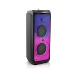 Un diseño en negro destacado por su portabilidad y versatilidad para fiestas, presentaciones o reuniones. Incluye micrófono con cable y ofrece una experiencia completa gracias a la combinación de audio, iluminación y múltiples opciones de conexión. Garantía de 12 meses respalda la confianza en la marca.