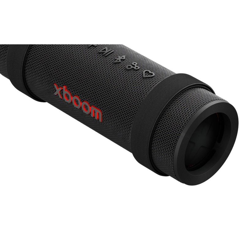 El diseño con asa integrada facilita el transporte y el acabado negro elegante evita huellas; está pensado para uso diario, viajes cortos y fiestas al aire libre. Respaldado por LG con 12 meses de garantía, aporta confianza para aventuras al aire libre.