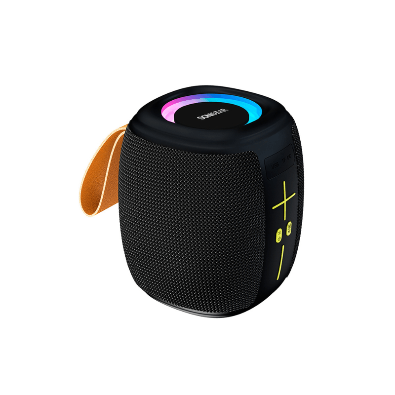 Parlante SonicGear SONICGO 5. Bluetooth 5.4, USB, tarjeta TF y FM, Audio: 8 W RMS, 16 W máximo, frecuencia 85 Hz – 18 kHz, tecnologia TWS emparejar dos parlantes idénticos de forma inalámbrica, batería recargable 2500 mAh autonomía 4–6 h volumen medio, tiempo de recarga 2 a 3 horas via USB-C, IPX4 resistente a salpicaduras de agua y lluvia ligera.