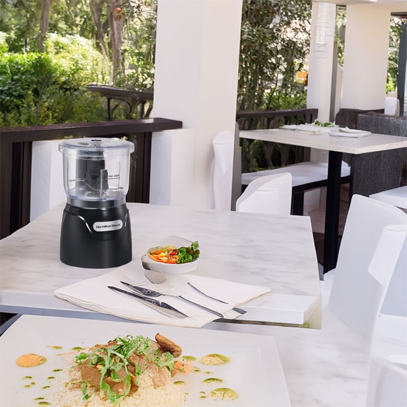 Resultados rápidos en la cocina gracias al Picador Hamilton Beach 5H009X. Pica cebollas y hierbas, tritura frutos secos y emulsiona salsas en minutos, sin esfuerzo. Su estructura en acero inoxidable con acabado negro aporta durabilidad y un toque moderno para cualquier cocina. Con una capacidad de 0.71 L, permite preparar porciones para toda la familia.
