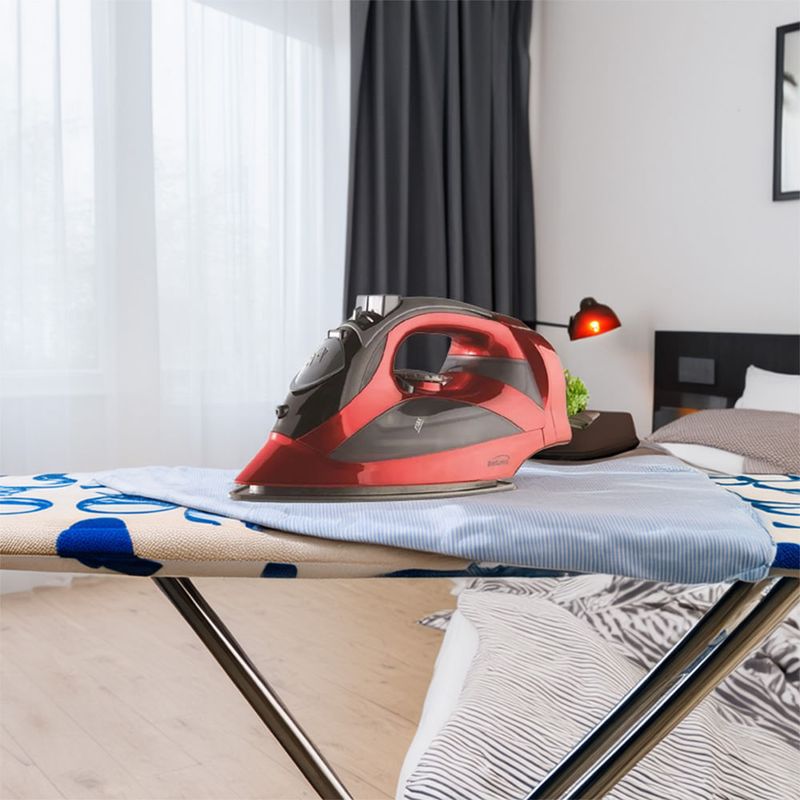 La poderosa plancha de vapor antiadherente Brentwood MPI-59R de 1200W elimina las arrugas de manera rápida y eficiente y le da a su ropa un aspecto nítido y pulido. Cuenta con una guía de selección de telas, configuraciones de secado, vapor y rociado, ventana de nivel de agua y cable retráctil. Use la configuración de vapor vertical para eliminar las arrugas de cortinas, cortinas, ropa de cama y más.