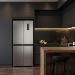 Este refrigerador Multi Door Electrolux ERQU40E6HWS ofrece una configuración French Door con puertas dobles en la parte superior y congelador abajo, pensado para tener todo al alcance. Con una capacidad de 421 litros y acabado plateado, combina amplitud y un estilo urbano. El dispensador de agua integrado y el panel digital permiten acceso rápido sin necesidad de abrir las puertas con frecuencia. El diseño despejado facilita la organización diaria y mantiene los alimentos dentro de un ambiente controlado mientras se conserva la frescura de cada ingrediente.