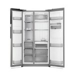 Refrigerador No Frost Electrolux Ers65F1Q5Bi, Side by Side de 611 litros, llega en color Silver para renovar la cocina. Con 185 cm de alto, 97 cm de ancho y 79 cm de profundidad, ofrece enfriamiento No Frost, tecnología Inverter y display digital externo para un manejo cómodo y eficiente.