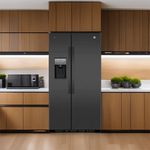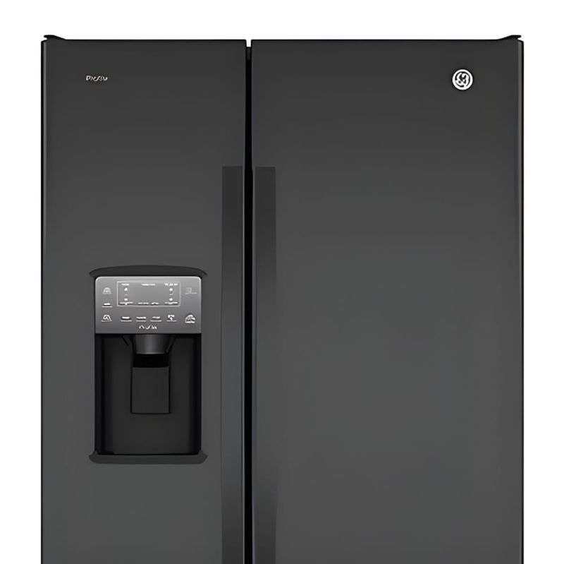 El Refrigerador No Frost General Electric PQL26PGKFPS ofrece 755 litros de capacidad en un formato side by side, en negro con acabado Black Steel. Dimensiones aproximadas: Alto 176.15 cm, Ancho 90.83 cm, Profundidad 83.1 cm.