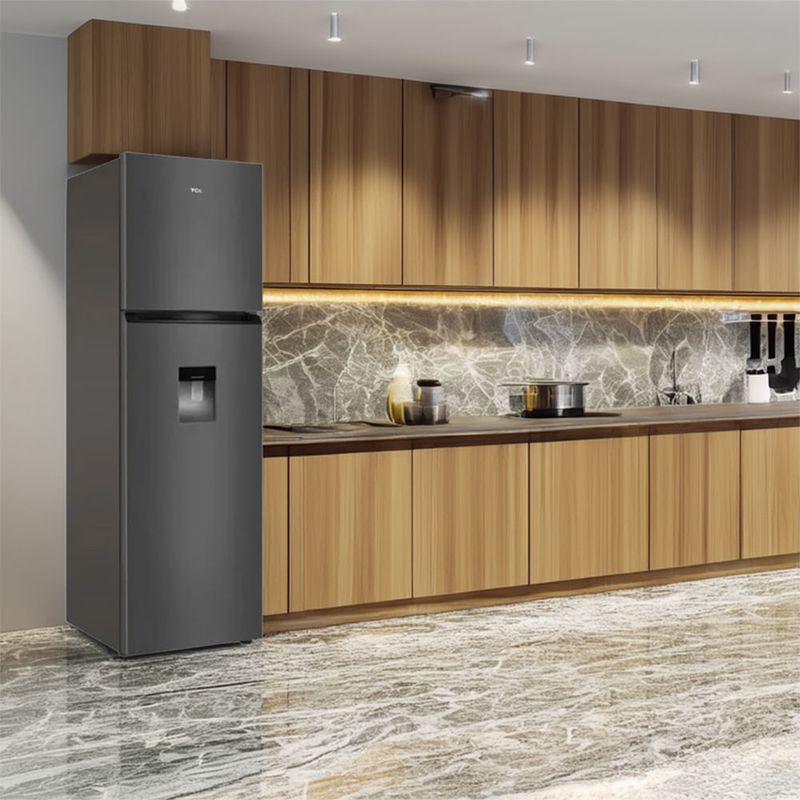 Refrigerador Top Mount TCL P315TMC P88587 ofrece 315 litros de capacidad con congelador arriba y sistema No Frost que evita la formación de escarcha. El frente en acero inoxidable mate, tratado para resistir rayones y huellas, se acompaña de un acabado en color Cristal que aporta modernidad y facilita la limpieza diaria. El interior está diseñado para mantener frescos los alimentos por más tiempo gracias a un flujo de aire uniforme. Con tecnología Inverter se mejora la eficiencia energética y la operación silenciosa, mientras el display digital permite ajustar temperatura y funciones de forma clara. Dispensador de agua integrado añade comodidad sin necesidad de abrir la puerta constantemente, manteniendo la temperatura interna estable. El diseño interior ofrece estantes y compartimentos ajustables para maximizar el espacio; la iluminación interior facilita ubicar productos y la distribución se adapta a diferentes necesidades de almacenamiento. El control digital facilita programaciones y monitorización, combinando rendimiento con un estilo sobrio. Color Cristal y acabados contemporáneos se integran a cocinas modernas, mientras la garantía de 12 meses respalda la confiabilidad del equipo. Es una opción versátil para familias que buscan espacio, rendimiento y estética sin complicaciones.