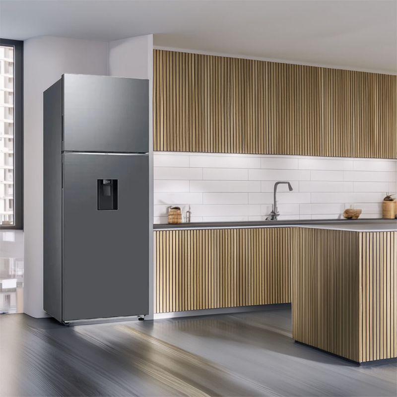 Refrigeradora samsung RT53DG6220S9ED, con 521 litros y acabado en gris, es una refrigeradora top mount (congelador arriba) que combina amplitud interior y un diseño práctico para la cocina. Su distribución facilita clasificar alimentos y conservar frescura, mientras que el color gris aporta neutralidad y elegancia.