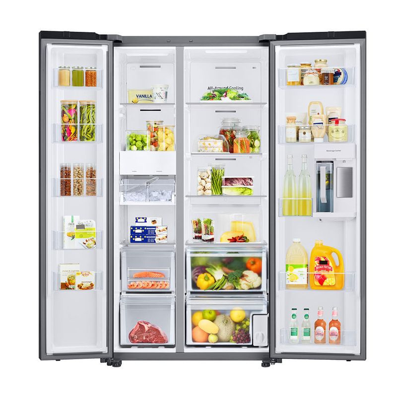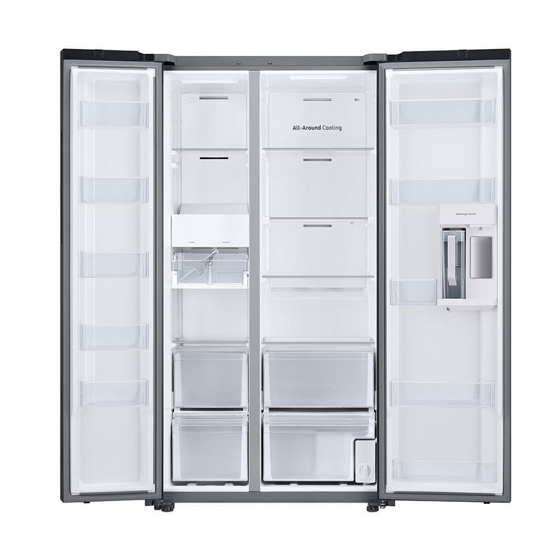 La Refrigeradora Bespoke Samsung RS23CB760A7NED es una refrigeradora side by side de 640 litros que combina diseño y eficiencia. SpaceMax permite mayor capacidad interna sin aumentar el tamaño exterior, y el compresor Digital Inverter ajusta la velocidad a la demanda. No Frost mantiene la temperatura estable y evita la formación de escarcha. Con dimensiones de 178.2 cm de alto, 91.2 cm de ancho y 73.2 cm de profundidad, el ancho se sitúa en torno a 36 pulgadas, ideal para cocinas modernas.