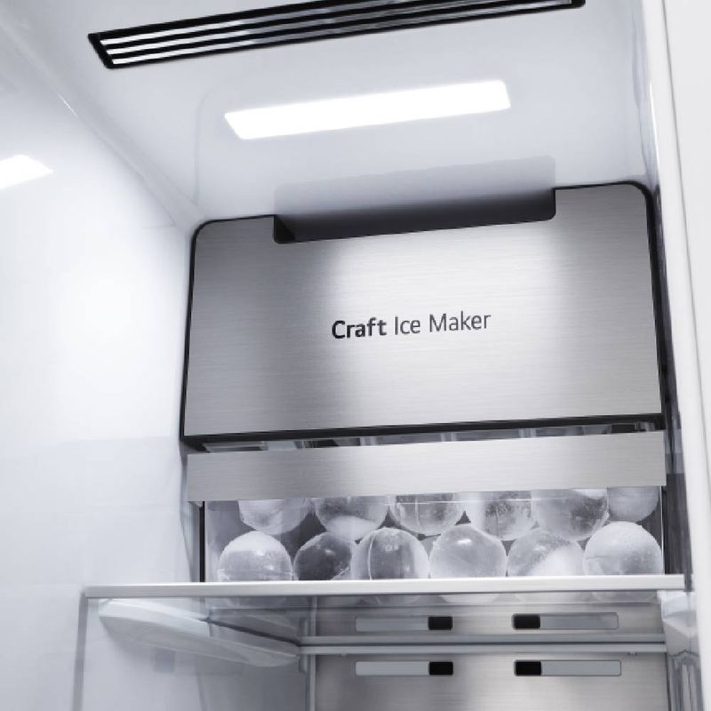 Door-in-Door y InstaView permiten ver y tomar lo necesario sin abrir la puerta principal, reduciendo la entrada de aire y preservando la frescura de los alimentos. Craft Ice genera cubos de hielo de tamaño especial para bebidas y reuniones, mientras LINEARCooling mantiene bajas fluctuaciones de temperatura para conservar sabor, textura y color de los productos durante más tiempo.