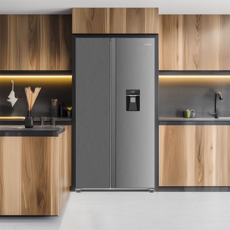 La refrigeradora Mabe MSE521QMLSS0 es una refrigeradora side by side de 521 litros que optimiza el espacio en cocinas modernas. Con No Frost evita la formación de hielo y la tecnología inverter mantiene temperaturas estables con menor consumo. Incluye generador de hielo y dispensador de agua, además de display digital y panel táctil para acceder a las funciones clave.