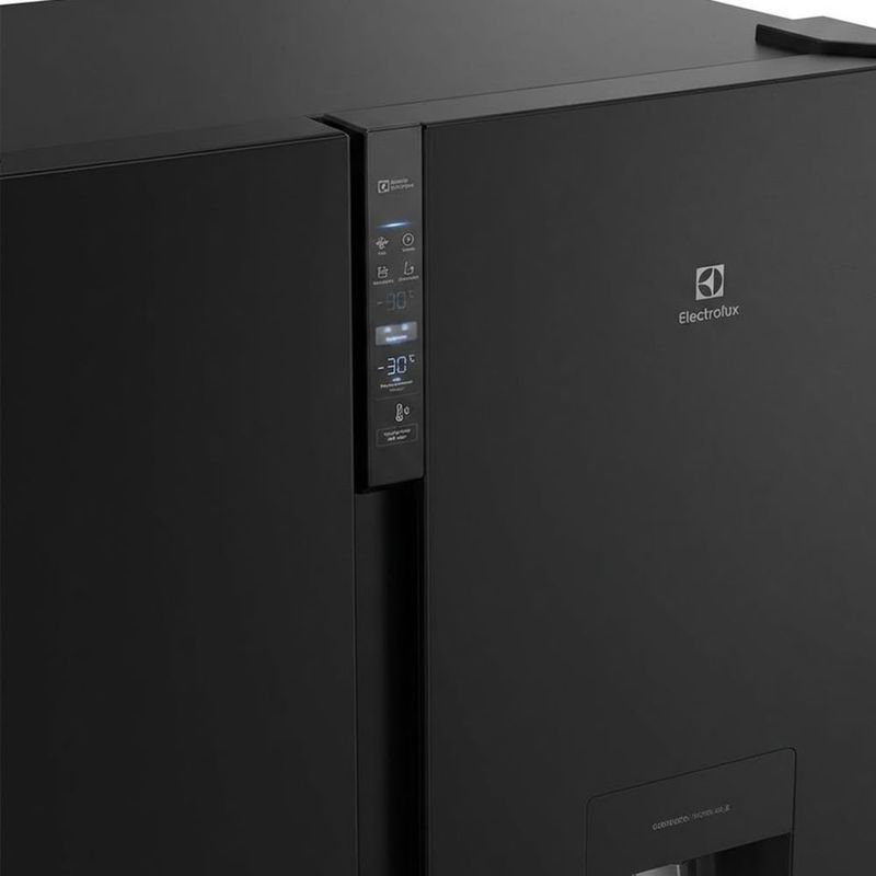 Refrigeradora French Door No Frost Electrolux ERSB54N6WXB, con puertas dobles arriba y freezer abajo, ofrece una capacidad total de 522 litros en un elegante acabado negro. Gracias a la tecnología Inverter, mantiene la temperatura estable mientras optimiza el consumo eléctrico y reduce el desperdicio. El sistema AutoSense controla automáticamente la temperatura para prolongar la vida de los alimentos y mantener su frescura por más tiempo, incluso en días de alto movimiento. Su diseño interior está pensado para la organización, con compartimentos que facilitan separar frutas, verduras y productos frescos de los alimentos congelados.
