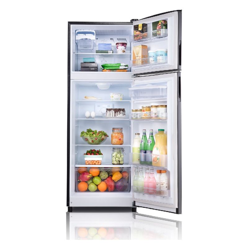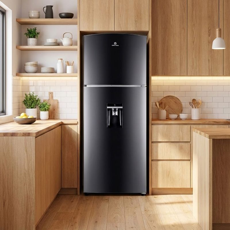 El panel de control electrónico permite ajustar la temperatura con precisión y de manera intuitiva. Dispone de dispensador de agua para obtener líquido frío al instante y de iluminación LED que ilumina el interior, facilitando la búsqueda del alimento sin esfuerzo. Como refrigeradora top mount, aprovecha al máximo el volumen sin ocupar demasiado espacio.