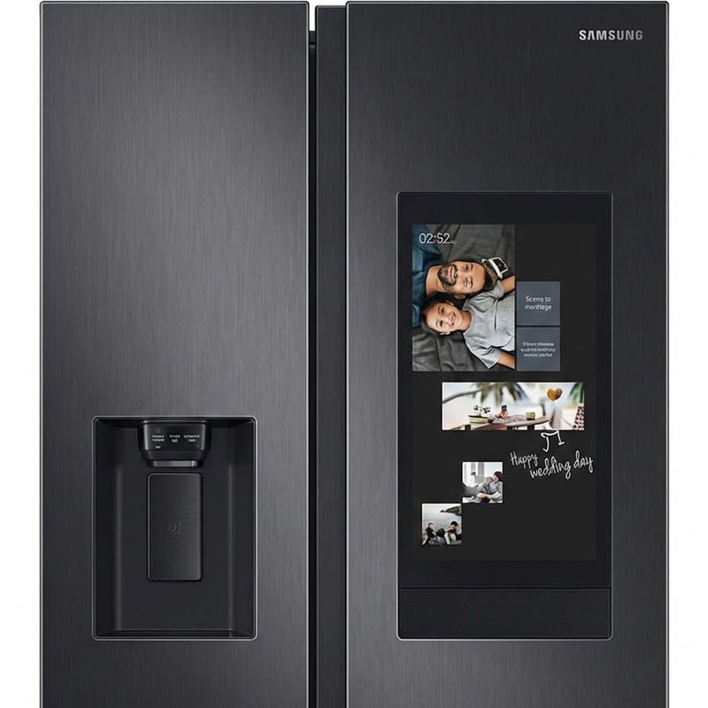 Family Hub con wifi habilitado ofrece una experiencia conectada: compartir imágenes, administrar calendarios y mantener el frigorífico enlazado con el teléfono. También permite mirar televisión, usar apps y reproducir música en Spotify. Facilita la gestión de alimentos y el control de electrodomésticos compatibles.