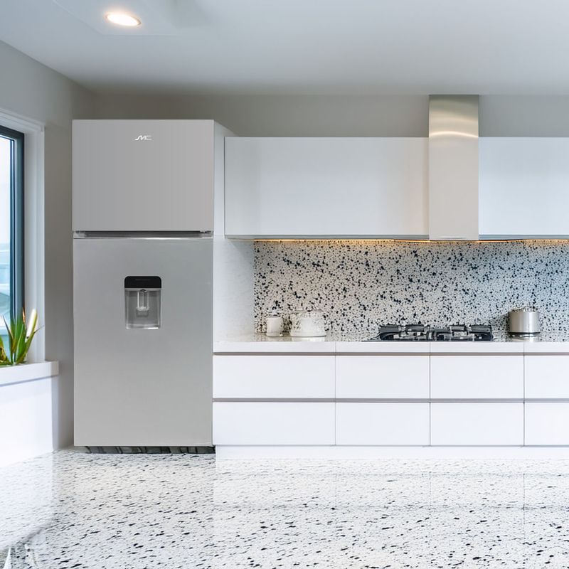 Refrigeradora top mount SMCRF16TMS ofrece 265 litros de capacidad para almacenar comidas, bebidas y productos frescos. Su sistema No Frost evita la formación de escarcha, manteniendo estantes y cajones listos para usar sin descongelados manuales. El congelador se ubica en la parte superior, favoreciendo una organización intuitiva y un acceso cómodo. El acabado plateado aporta un toque contemporáneo, ideal para cocinas modernas que buscan eficiencia y estilo en el día a día.
