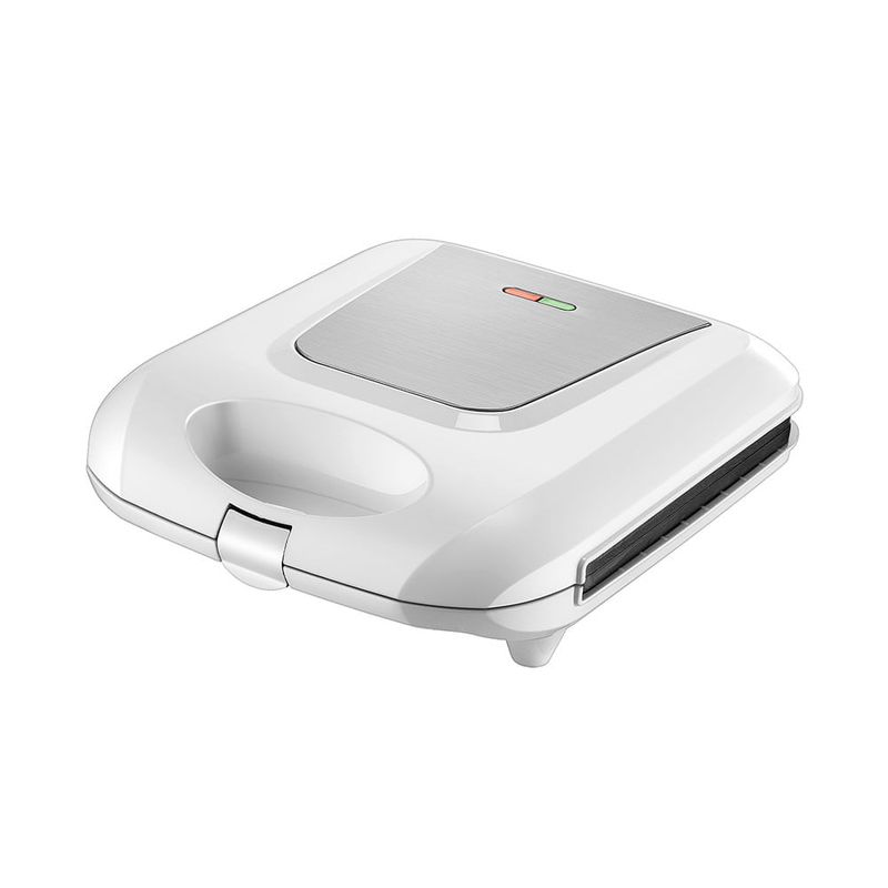 Su mango resistente al calor facilita el manejo incluso cuando está caliente, evitando quemaduras. Cada detalle combina durabilidad y sencillez: carcasa de acero inoxidable y plástico resistente, una superficie interior fácil de limpiar y un diseño compacto que se guarda en cualquier cocina diaria. Además, la garantía de 12 meses brinda seguridad, el voltaje de 120 V garantiza uso directo y la luz de preparado avisa de inmediato cuando el sándwich está en su punto. Para completar, su control automático de temperatura mantiene resultados consistentes sin complicaciones.
