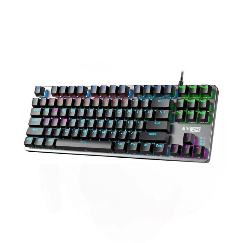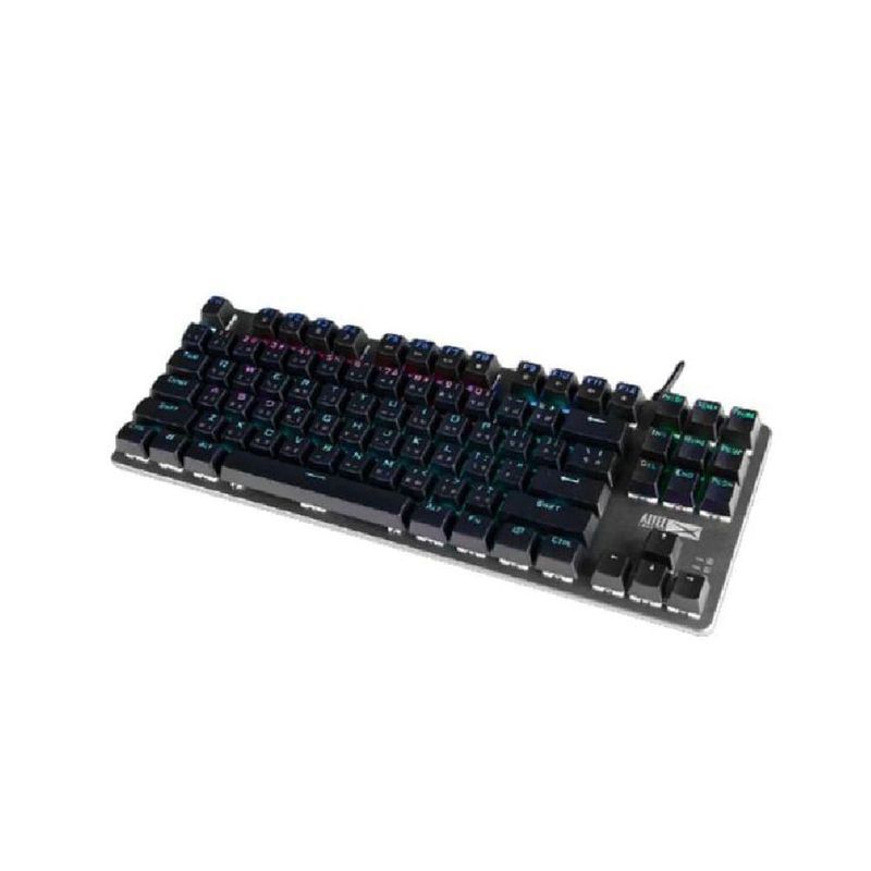Teclado Gamer Altec ALGK8404SPN llega en un acabado negro sobrio, diseñado para protagonistas de largas jornadas de juego. Su formato compacto guarda 87 teclas sin sacrificar la experiencia de juego, ideal para escritorios pequeños o configuraciones donde cada centímetro cuenta. Con conexión USB, basta enchufarlo para empezar a jugar, sin complicaciones. Su construcción ligera, con un peso de 0.8 kg y dimensiones de 42 cm de alto, 17 cm de ancho y 5 cm de profundidad, facilita desplazarlo entre sesiones y colocarlo junto a otros periféricos.