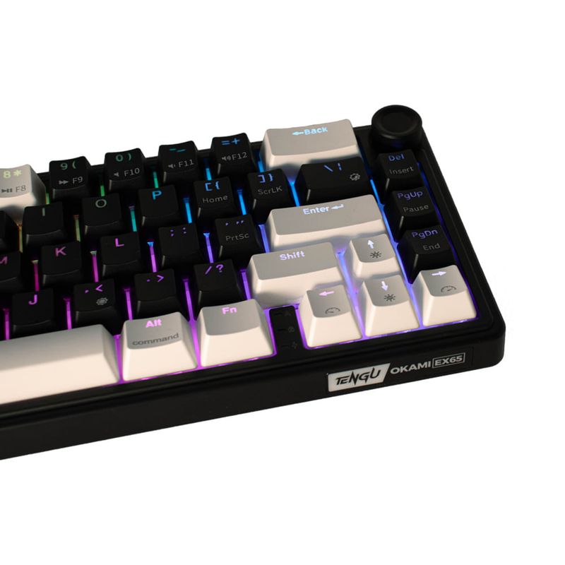 Teclado gamer Tengu Okami Ex65 en color negro con blanco combina diseño moderno y rendimiento para quienes exigen precisión en cada pulsación. Equipado con interruptores azul, ofrece una respuesta táctil definida que favorece acciones rápidas durante las partidas y eliminaciones rápidas de errores. Su perfil sobrio encaja en cualquier configuración, mientras que el nombre Okami transmite una identidad gaming clara y atractiva. La experiencia de tecleo resulta fluida y constante, con sensación de control en cada acción.