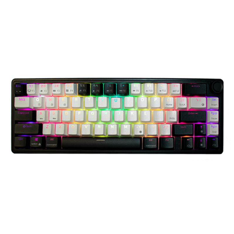 El Teclado Gamer Tengu Okami Ex65 adopta un formato 65% que optimiza el espacio sin perder eficiencia en juego, presentando un acabado blanco con negro y una iluminación RGB que responde a cada acción. Su diseño compacto mantiene accesibles teclas esenciales para maniobras rápidas en sesiones intensas, y el contraste entre blanco y negro aporta una estética sobria y moderna.