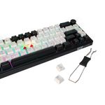 La iluminación RGB añade dinamismo visual en cada sesión, mientras el perfil bajo y la base estable evitan movimientos durante pulsaciones intensas. Este teclado se integra con facilidad a setups modernos gracias a su estilo sobrio en blanco y negro y a la promesa de una experiencia de juego constante y cómoda.