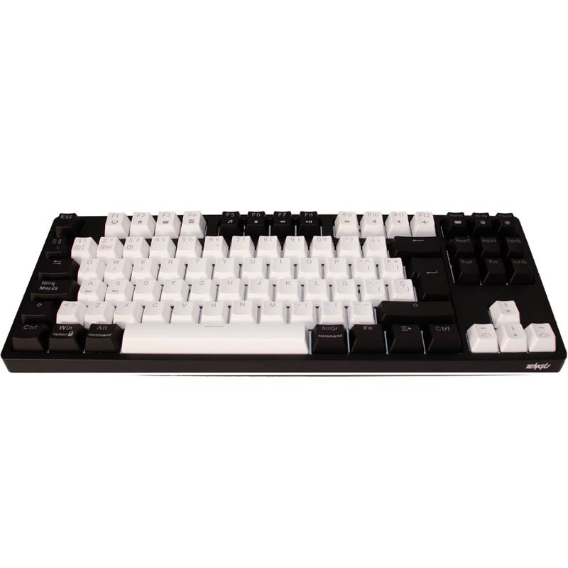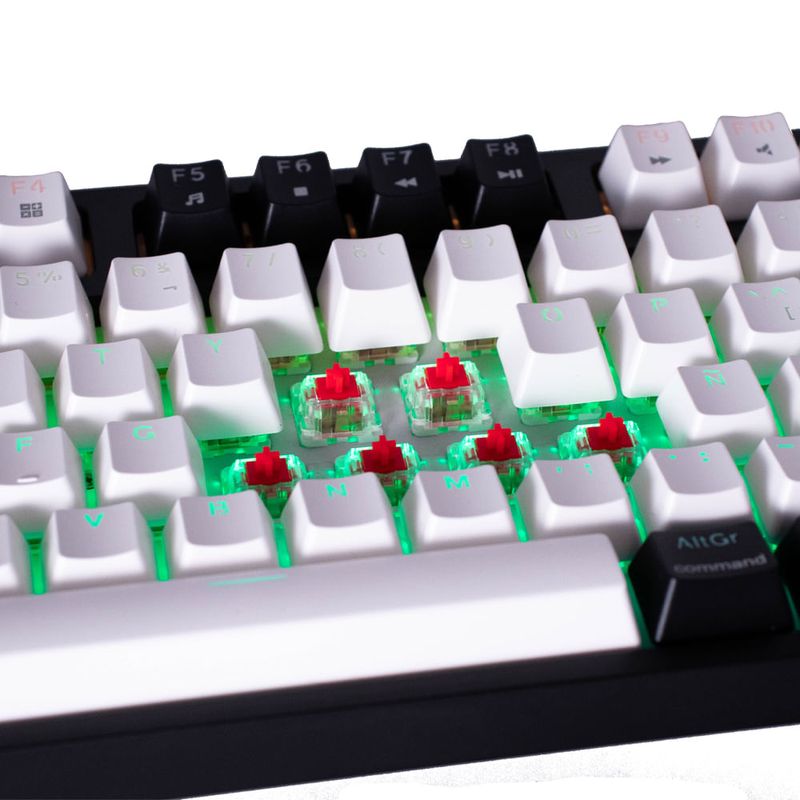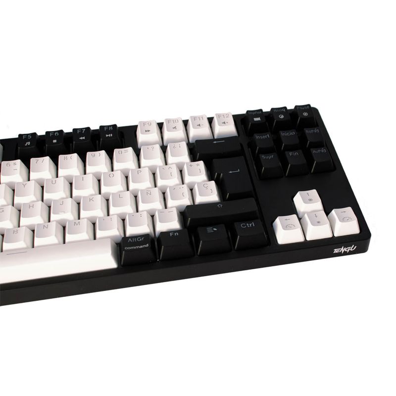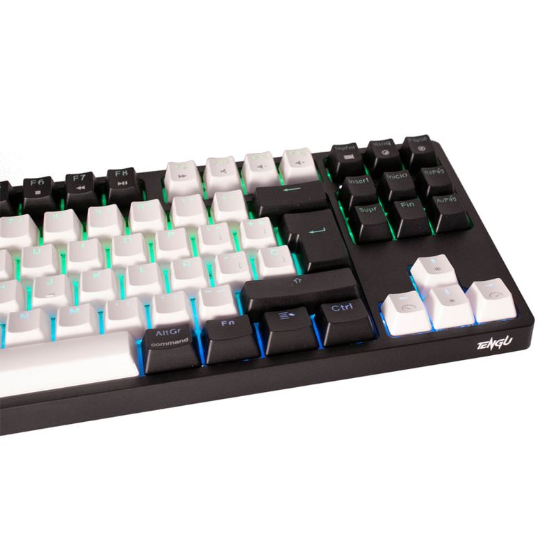 Teclado gamer Tengu Yokai Ex80 se presenta en un elegante acabado Blanco Con Negro con diseño TKL 80% que prioriza rapidez y espacio en el escritorio. Su carcasa de plástico combina ligereza y rigidez, formando un perfil de 17.7 cm de alto, 39.1 cm de ancho y 5 cm de profundidad; pesando 1.23 Kg, es cómodo para sesiones prolongadas.