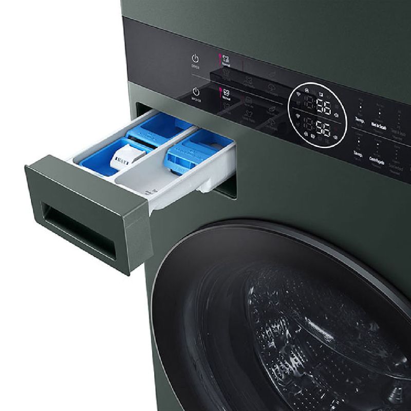 Con una torre de lavado y secado integrada se logran resultados impecables al procesar grandes cargas sin esfuerzo gracias a AI Direct Drive y Steam que cuidan cada tejido. TurboWash 360 acelera los ciclos sin sacrificar la suavidad, mientras el acabado verde aporta estilo a la lavandería. El panel central facilita operar todos los ajustes desde un único lugar, y la compatibilidad con lavados rápidos permite terminar tareas en menos tiempo.