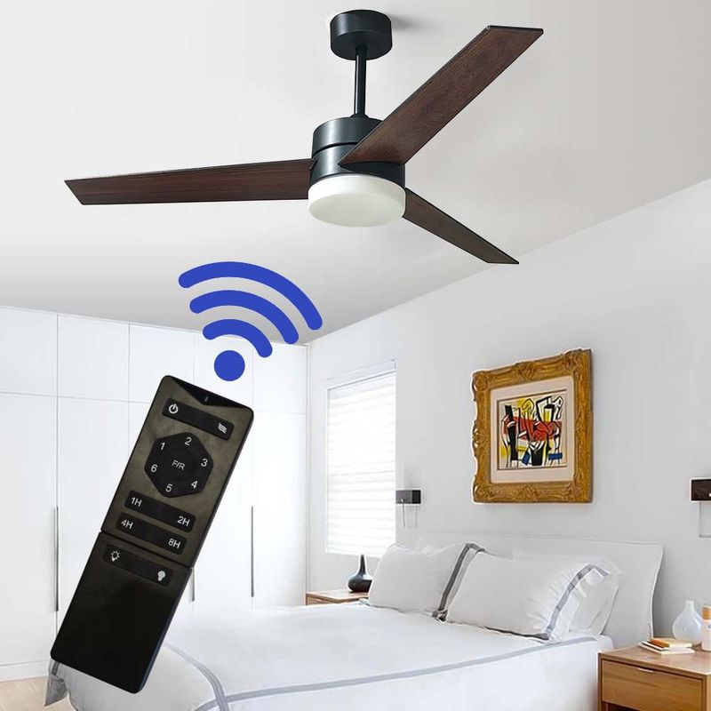 Ventilador de techo Fanhouse Dante P8750 ofrece un diámetro de 52 pulgadas y un diseño tumbado en acabado negro, con tres aspas en tono café que suman estilo y rendimiento. El motor DC de 30 W aporta eficiencia, mientras que las seis velocidades permiten ajustar la brisa con precisión. Con un flujo de aire de 7200 CFM, este modelo llena la habitación de aire fresco sin esfuerzo.