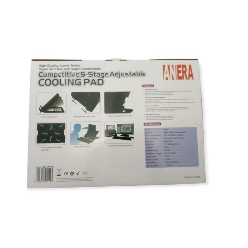 BASE DE ENFRIAMIENTO PARA LAPTOP MARCA ANERA MODELO AE-CP139 VENTILADOR GRANDE COOLING Garantía: 12 meses