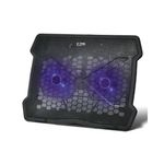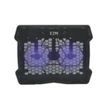 Ventilador para laptop Ezmi P8748 es una base enfriadora diseñada para notebooks de hasta 15,6 pulgadas. Con dos niveles de inclinación y dos ventiladores, entrega flujo de aire constante para mantener el equipo a temperatura adecuada. El acabado negro y la iluminación LED azul aportan un toque moderno al área de trabajo.