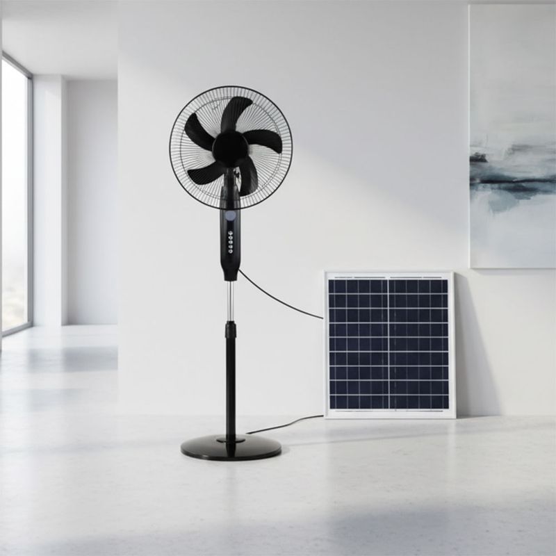Su formato compacto y color negro se integra a distintos estilos de interiores, aportando frescura sin ocupar mucho espacio. Con batería incluida y garantía de 12 meses, es una solución práctica para días de calor, reuniones o trabajo remoto.
