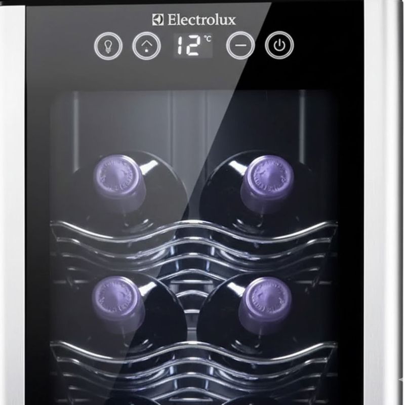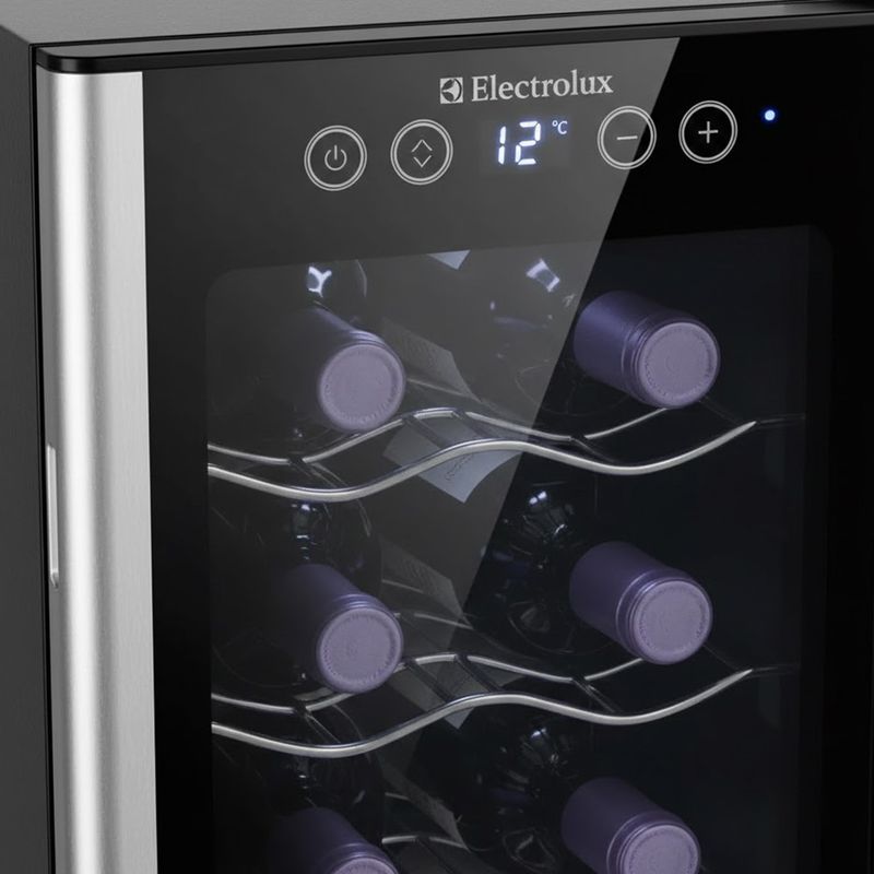 La vinera Electrolux EWW123XSLB ofrece capacidad para 12 botellas, con un volumen de 33 litros y una única zona de temperatura entre 12 y 18 °C. El diseño en negro combina panel digital LED y luz interior para una visibilidad clara de cada botella, conservando la textura y el sabor del vino. El panel, de lectura rápida, permite ajustar la temperatura con precisión y verificar el estado sin necesidad de abrir la puerta, mientras la iluminación interior facilita localizar la botella adecuada al instante.