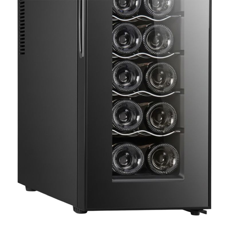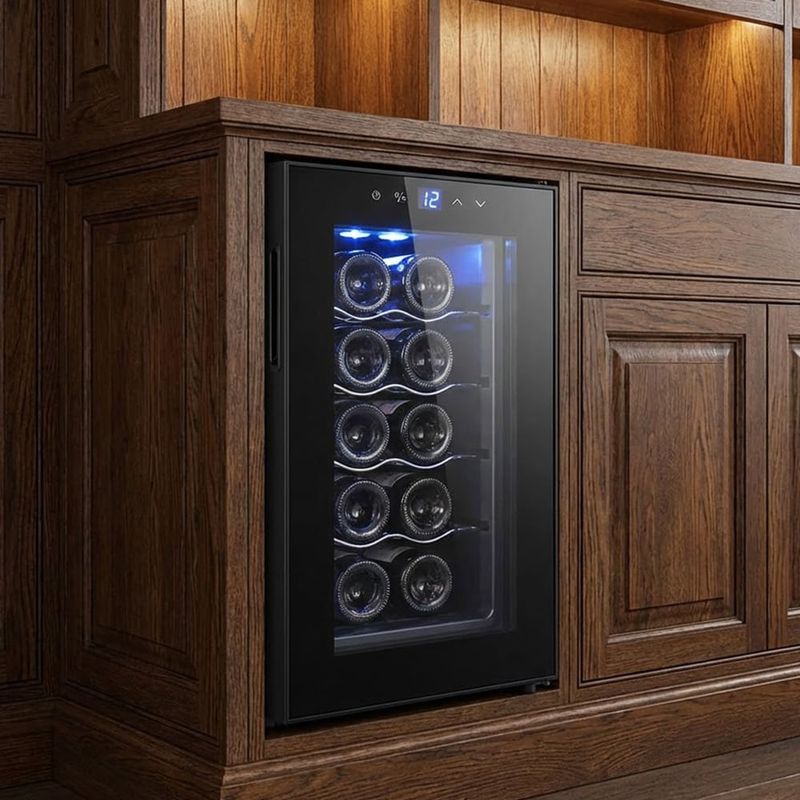 Gracias a su iluminación interior y a la distribución interior, la vinera conserva la textura y el aroma de cada etiqueta, desde blancos ligeros hasta tintos con mayor estructura. Su diseño negro añade un toque contemporáneo al espacio, convirtiéndola en una solución práctica para quien requiere una capacidad moderada sin ocupar mucho sitio.