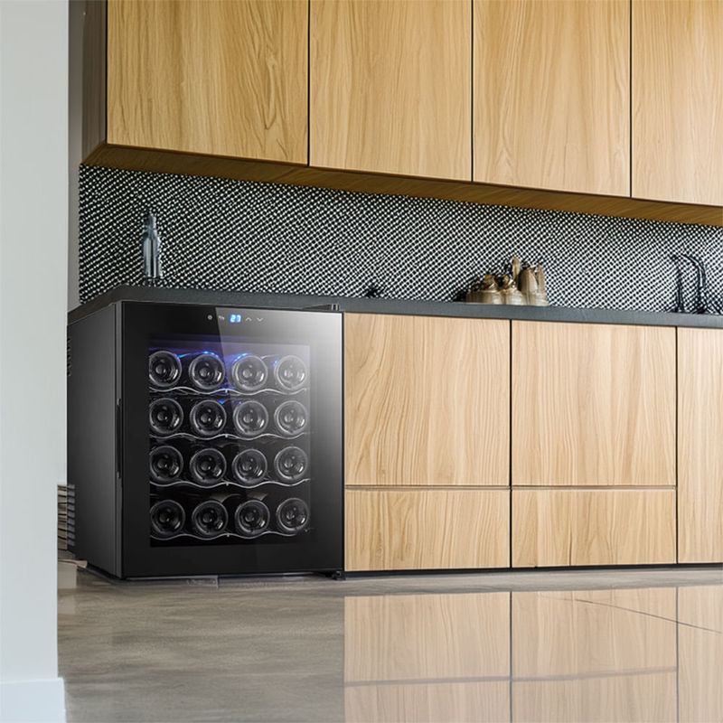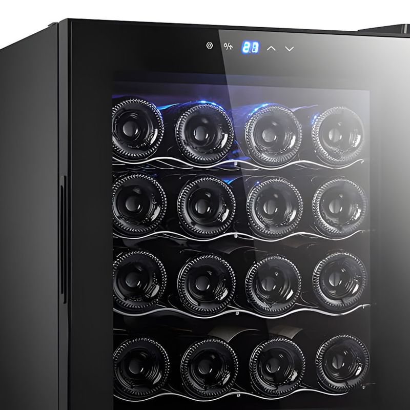 Sus dimensiones compactas —50 cm de alto, 43 cm de ancho y 48 cm de profundidad— junto con un peso de 16 kg y una potencia de 70 W, hacen de esta vinera una opción práctica para la vida diaria. El acabado en negro aporta discreción y estilo moderno, mientras la puerta transparente permite exhibir la colección sin esfuerzo. Estética sobria y funcionalidad se combinan para convertirla en un aliado para quienes valoran vinos bien resguardados en casa.