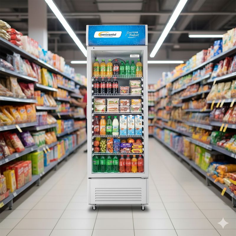 La vitrina Continental XLS-280W de 268 litros combina visibilidad y estilo para exhibir productos refrigerados en puntos de venta. Su puerta de vidrio panorámica permite una presentación clara desde diferentes ángulos, mientras el acabado cromado aporta un toque contemporáneo al mobiliario comercial. Diseñada para vitrinas de refrigeración, ofrece una solución atractiva y funcional para destacar ofertas sin sacrificar la temperatura adecuada.