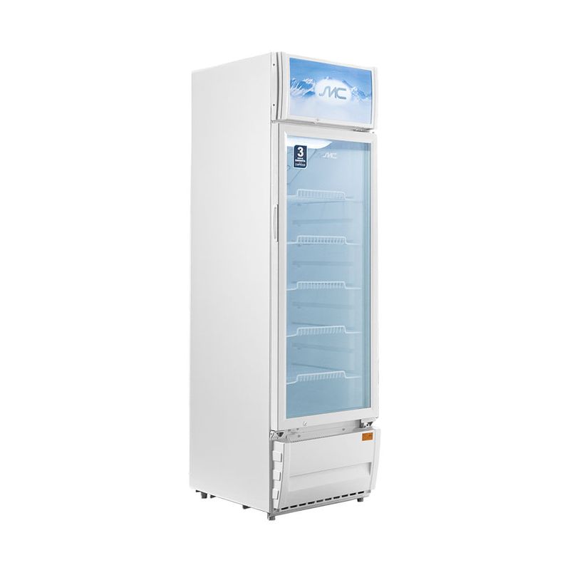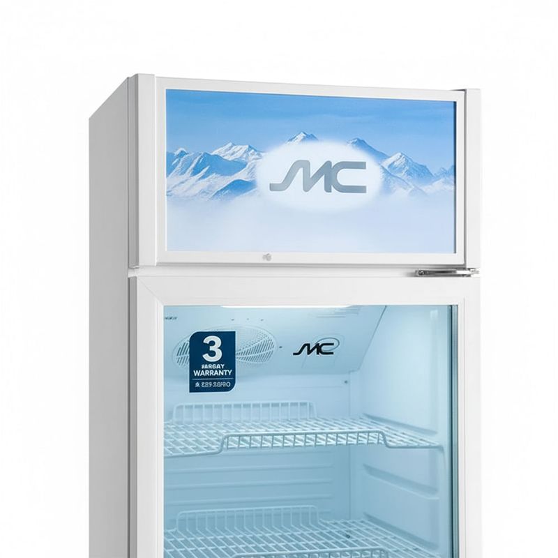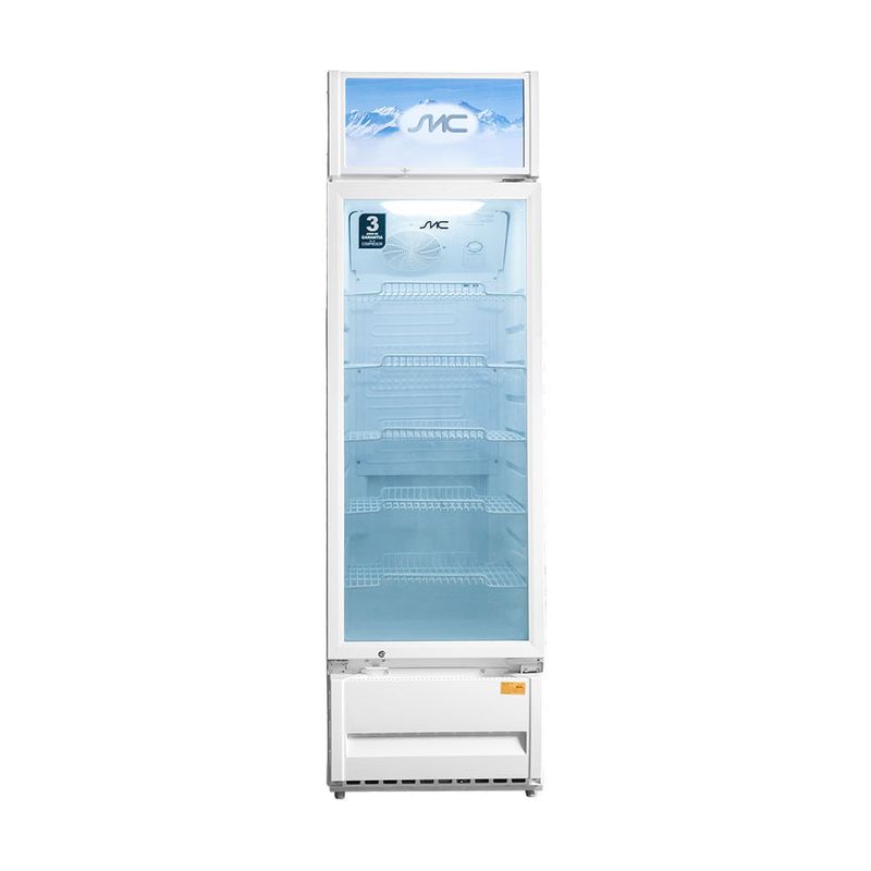 La vitrina SMCVT14HB ofrece una solución de exhibición eficiente para la refrigeración comercial. Con una capacidad de 211 litros y una puerta de vidrio panorámica, permite visibilizar productos sin comprometer la temperatura. Su altura de 174 cm, su ancho de 61 cm y su profundidad de 52 cm, en acabado blanco, facilita una instalación flexible en mostradores o espacios de venta.