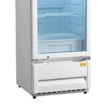 La base de la vitrina facilita la limpieza y la durabilidad en un entorno de venta. El acabado blanco aporta un aspecto neutro que se integra con distintas líneas de producto. La puerta de vidrio panorámica permite ver el contenido desde diferentes ángulos, mientras que su diseño compacto facilita la colocación en mostradores o zonas de paso, optimizando el uso del espacio y la visibilidad de las ofertas.
