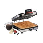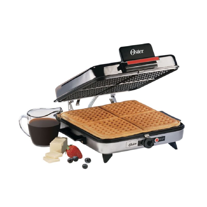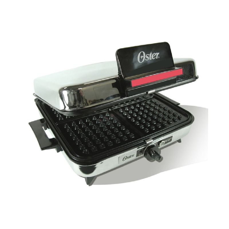 Con la Wafflera Oster 3 en 1 se disfrutan desayunos rápidos y caseros gracias a la capacidad de preparar 4 waffles dorados al mismo tiempo. El control de temperatura ajustable permite dorar y cocinar con precisión, mientras las placas antiadherentes reversibles facilitan la limpieza. Su acabado plateado aporta un toque moderno en la cocina, y su mango resistente al calor ofrece manejo seguro durante cada uso.